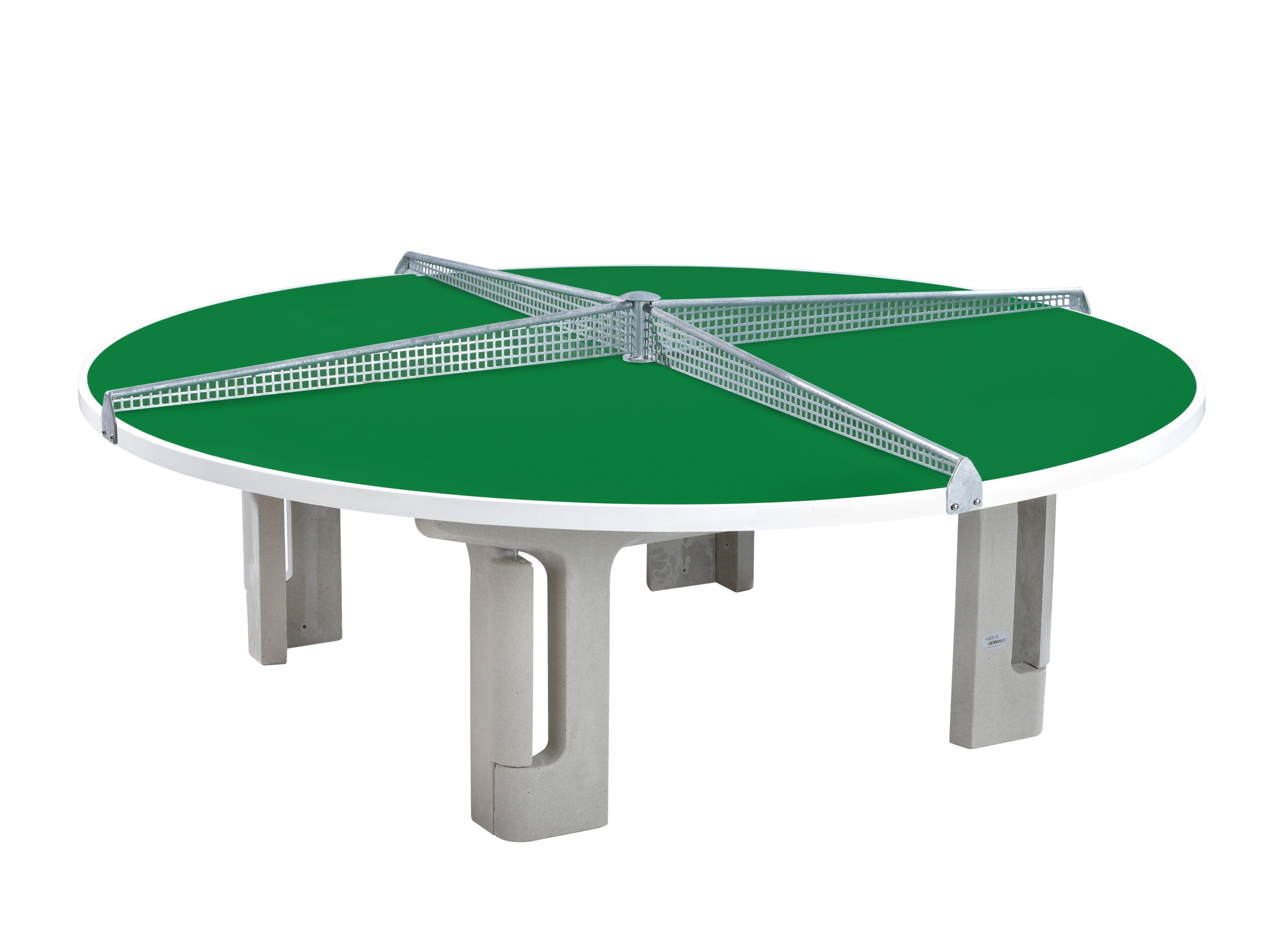 This model has a round shape, which makes the game more exciting and versatile, allowing up to four players to play at the same time. The table is available with one or two nets.