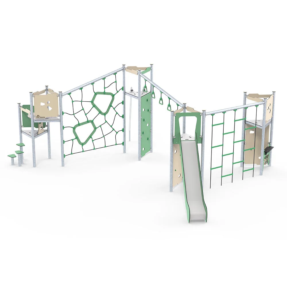 Brandon är den största modellen i Basic-serien och består av fyra torn med golvhöjder på 140 cm och 190 cm. Lekmiljön innehåller klätternät, klätterväggar, apstänger, rutschkana, glidstavar, trappstenar och lekpaneler för yngre barn. De tydliga lekzonerna gör att flera åldersgrupper kan leka parallellt utan att störa varandra. Designen fokuserar på högt lekvärde, trygghet och varierad utvecklande lek.
