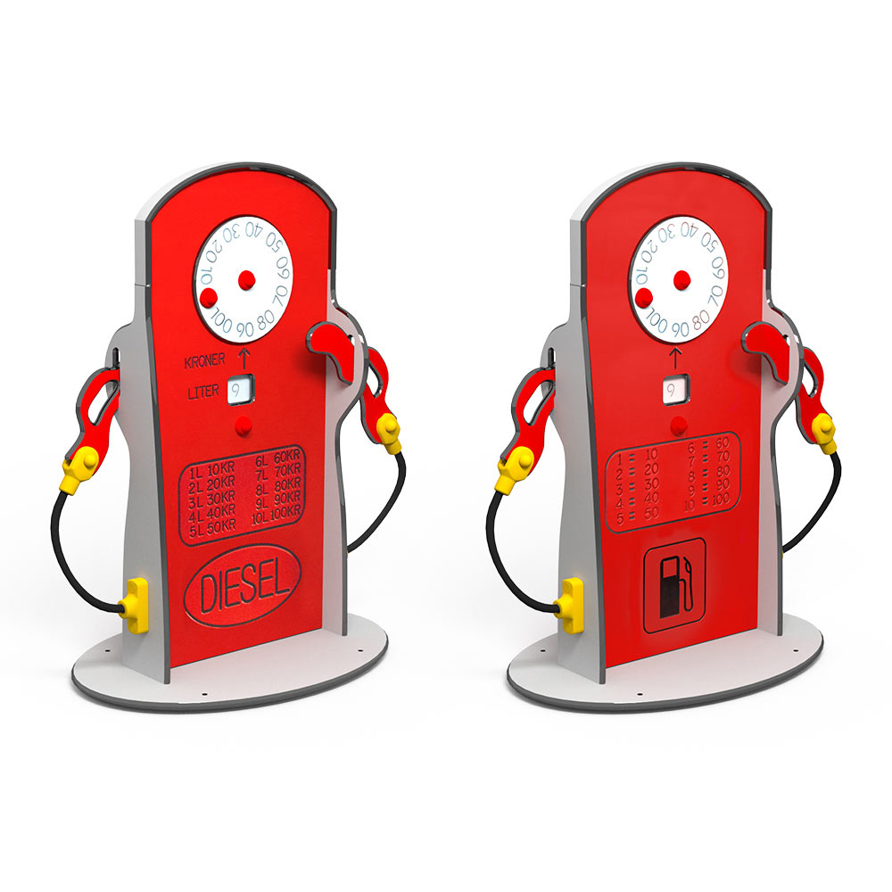 Bränslepumpen låter barn leka tankstation och öva förståelse för siffror, turordning och förhandling. Flyttbara reglage och detaljer stärker finmotoriken och uppmuntrar social interaktion. Kan placeras både inom- och utomhus och kompletterar cykel- och gokartbanor.