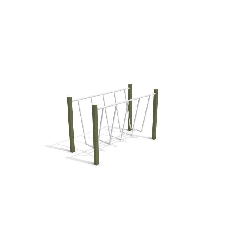 Bro bestående av två skenor med fem stegrör. Tränar balans och motorisk koordination för ungdomar och vuxna.