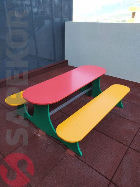 Campingset 20209 i glada färger är ett bra komplement till alla barns lekplatser. Barn kan koppla av och få den energi de behöver med ett mellanmål. Den rostfria stålkonstruktionen och högkvalitativa HDPE-plaster är en garanti för lång livslängd med minimala underhållskrav. Intyg om överensstämmelse med standarden: EN 1176-1 Rekommenderad slagyta: gummibeläggning, gräs, gräs