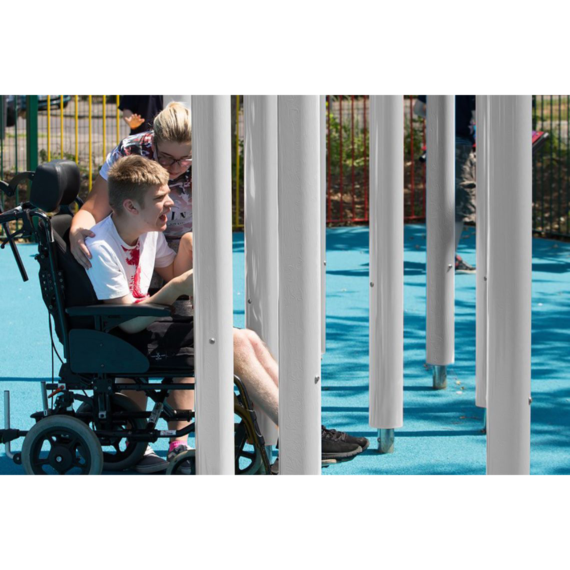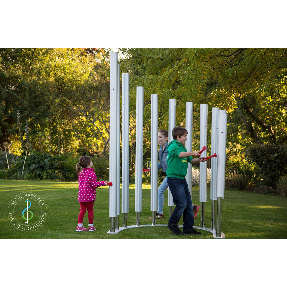 Colossus Chimes består av 11 klockspel stämda i C-dur pentatonisk skala. Instrumentet är särskilt lämpat för sensoriska trädgårdar och inkluderande lekplatser där stark ljudnärvaro och tillgänglighet för alla åldrar efterfrågas.