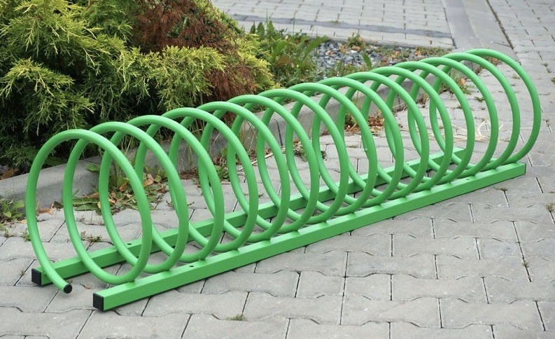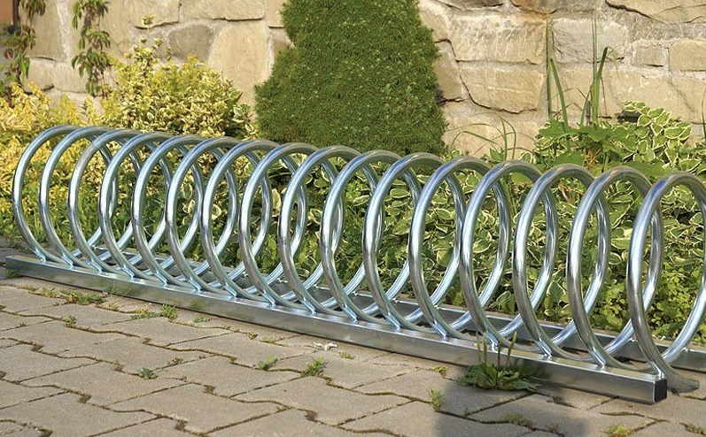 Cykelställ med 6 platser i rostfritt stål och plast.