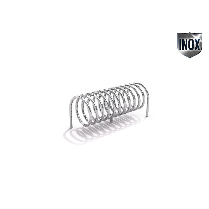 Spiral rostfritt stål cykelställ för 5 bikes. 3 mounting legs.