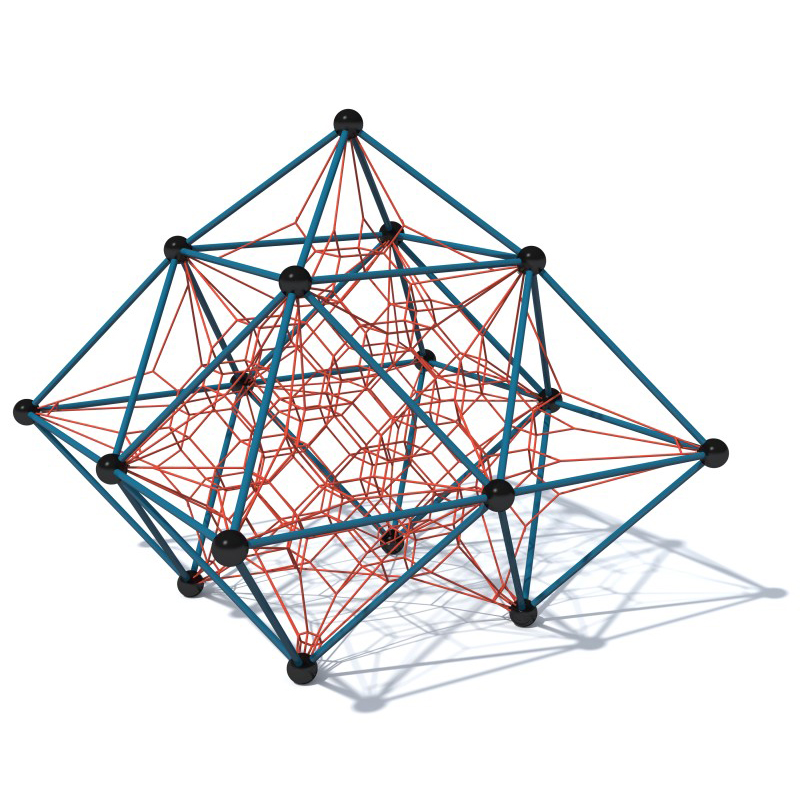 Rumslig diamantformad klätterstruktur tillverkad av sammankopplade stålrör och baserad på fyra stödpunkter som möts mot strukturens centrum. Rören är sammankopplade med 17 metallkulor som bildar toppen av konstruktionen. Varje kula har ett justeringssystem för repspänning. Inuti strukturen finns ett jämnt fördelat flervägsnät av förstärkt polyesterrep med 18 mm tjocklek. Korsningsrep är sammanfogade med fabrikspressade aluminiumkulor eller kopplingar utan skruvar för ökad säkerhet och hållbarhet.
