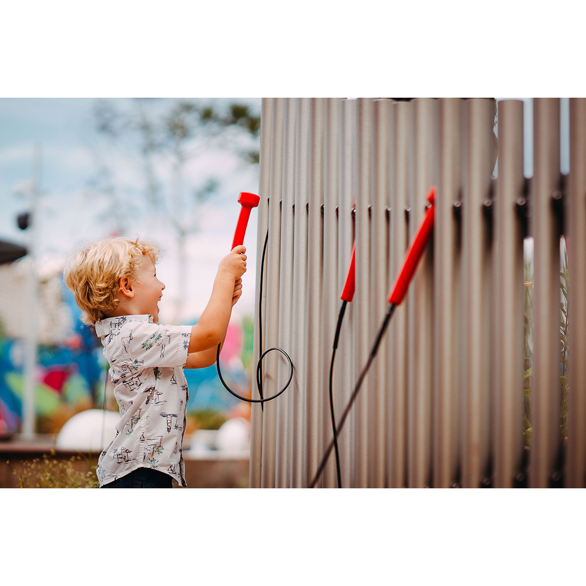Diatonisk symfoni Freechimes är ett omfattande utomhusinstrument med 22 aluminiumklockspel för inkluderande musiklek och undervisning.