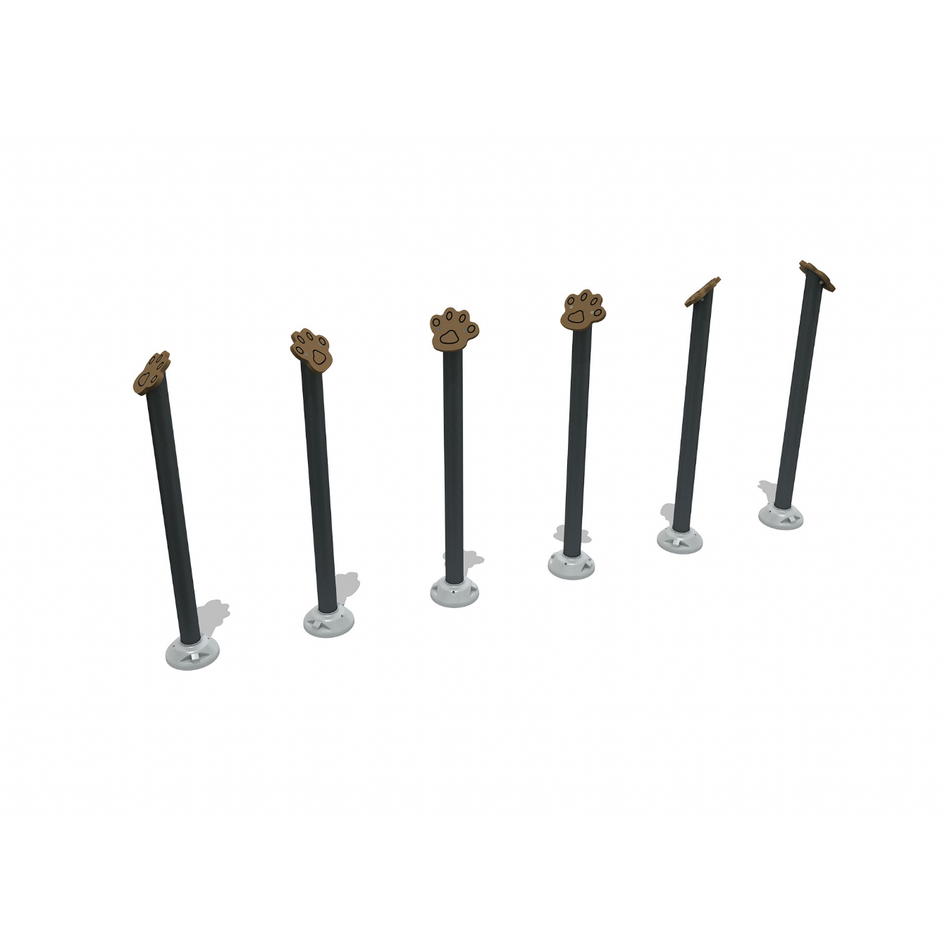 En serie stabila balansstolpar som tränar hundens fokus, kroppskontroll och precision i rörelse. Konstruktionen gör det möjligt för hundar att hoppa, kliva eller balansera mellan stolparna. Idealisk för lekfull träning och mental stimulans.