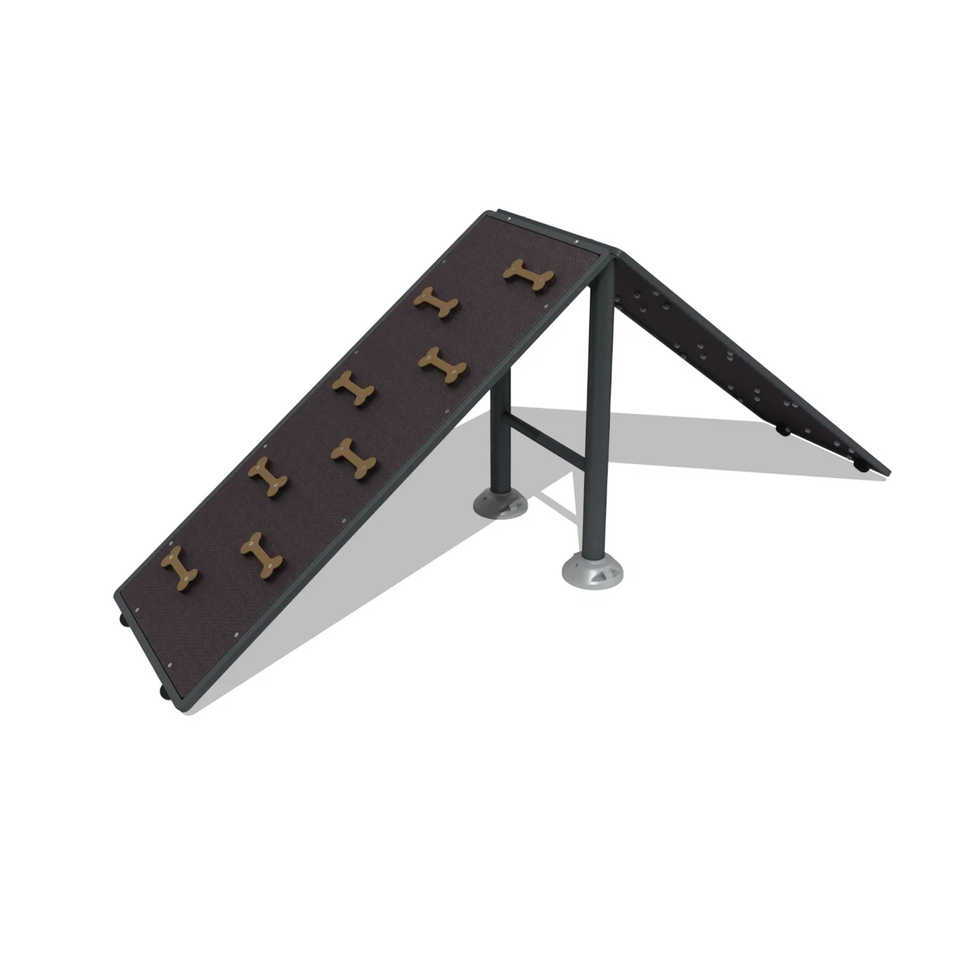En tvåvägs balansramp som ger hundar möjlighet att gå upp, ner och över en lutande yta. Perfekt för att bygga styrka, stabilitet och god kontroll i rörelsen. Lämplig för träningsparker, djurparker och hundaktivitetsområden.