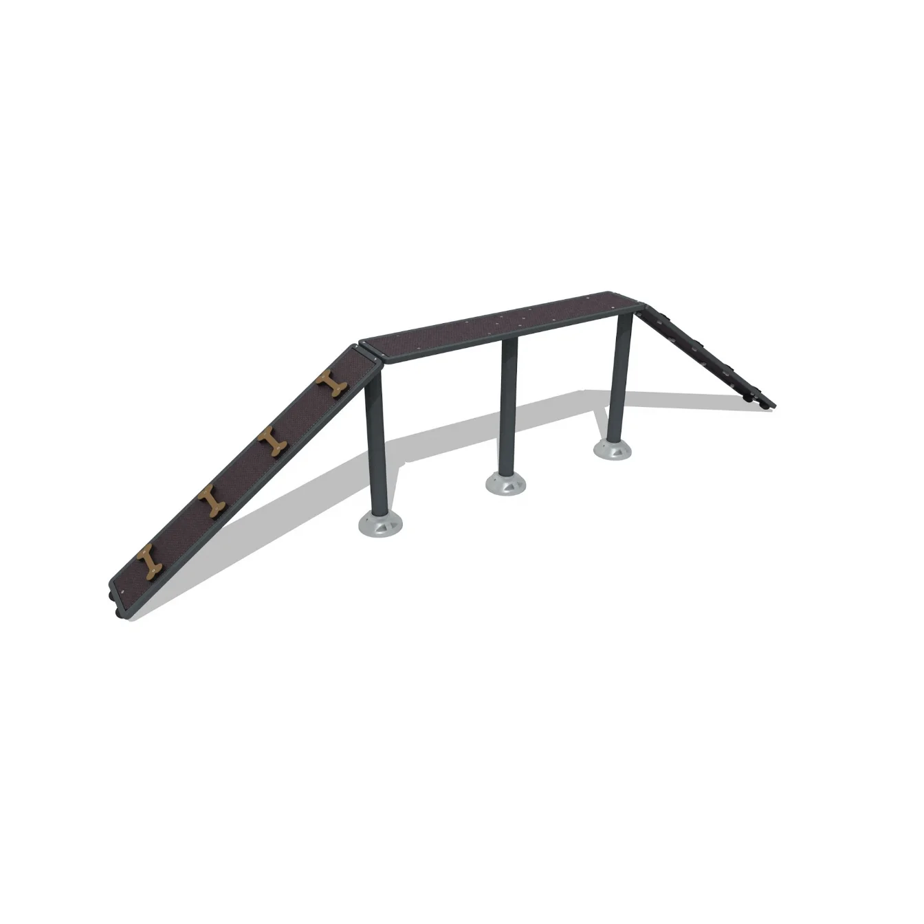 En lång och stabil balansramp där hundar kan öva koordination, balans och rytm i rörelse. Den generösa längden ger en trygg övningsyta som passar hundar på alla nivåer. Idealisk för hundparker och träningsområden.