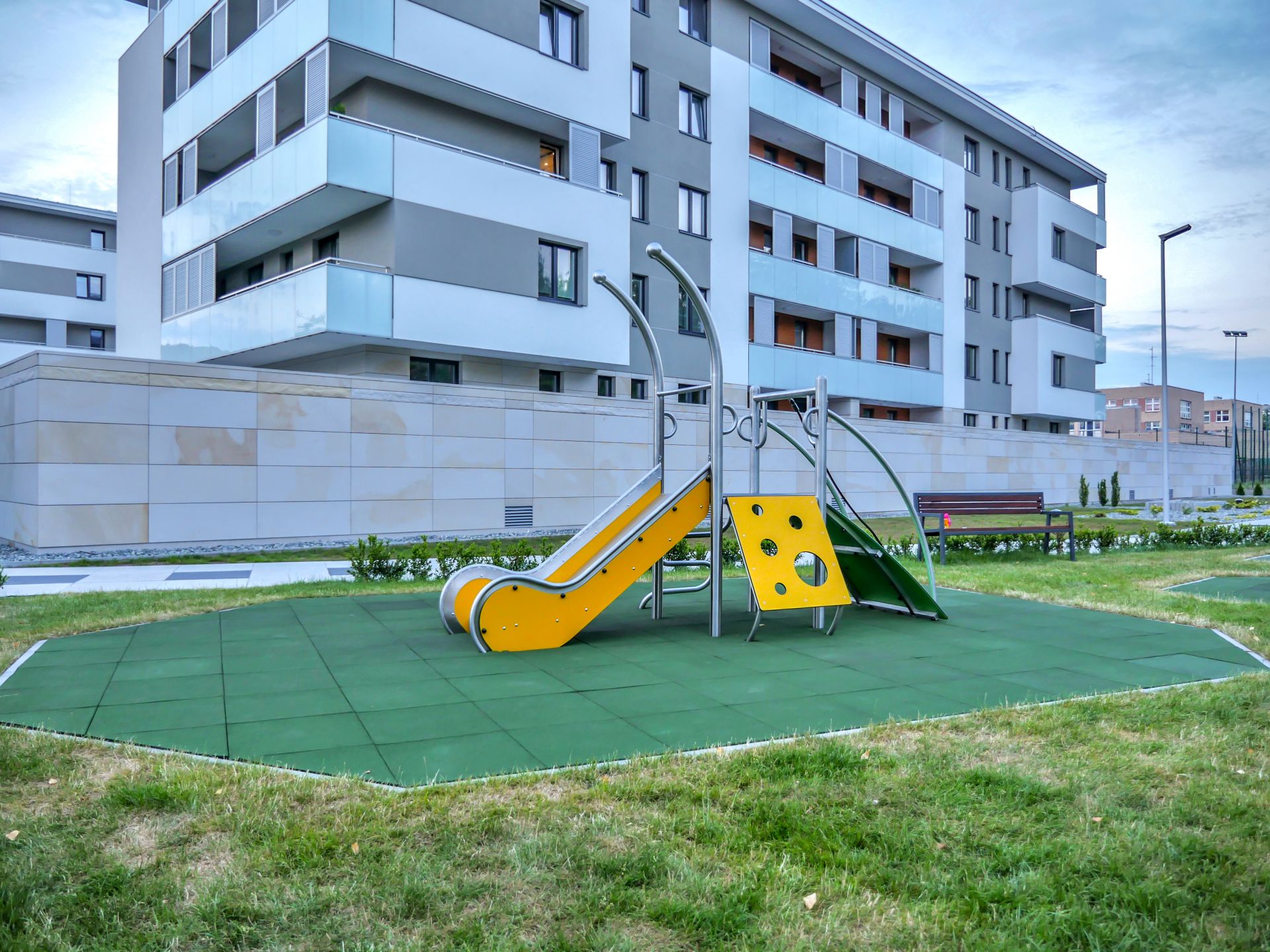 Färgglad lekställning med rutschkana i lekfull snigeldesign som lockar små barn till rörelse och utforskande. Perfekt för mindre lekplatser med fokus på trygg och stimulerande lek.