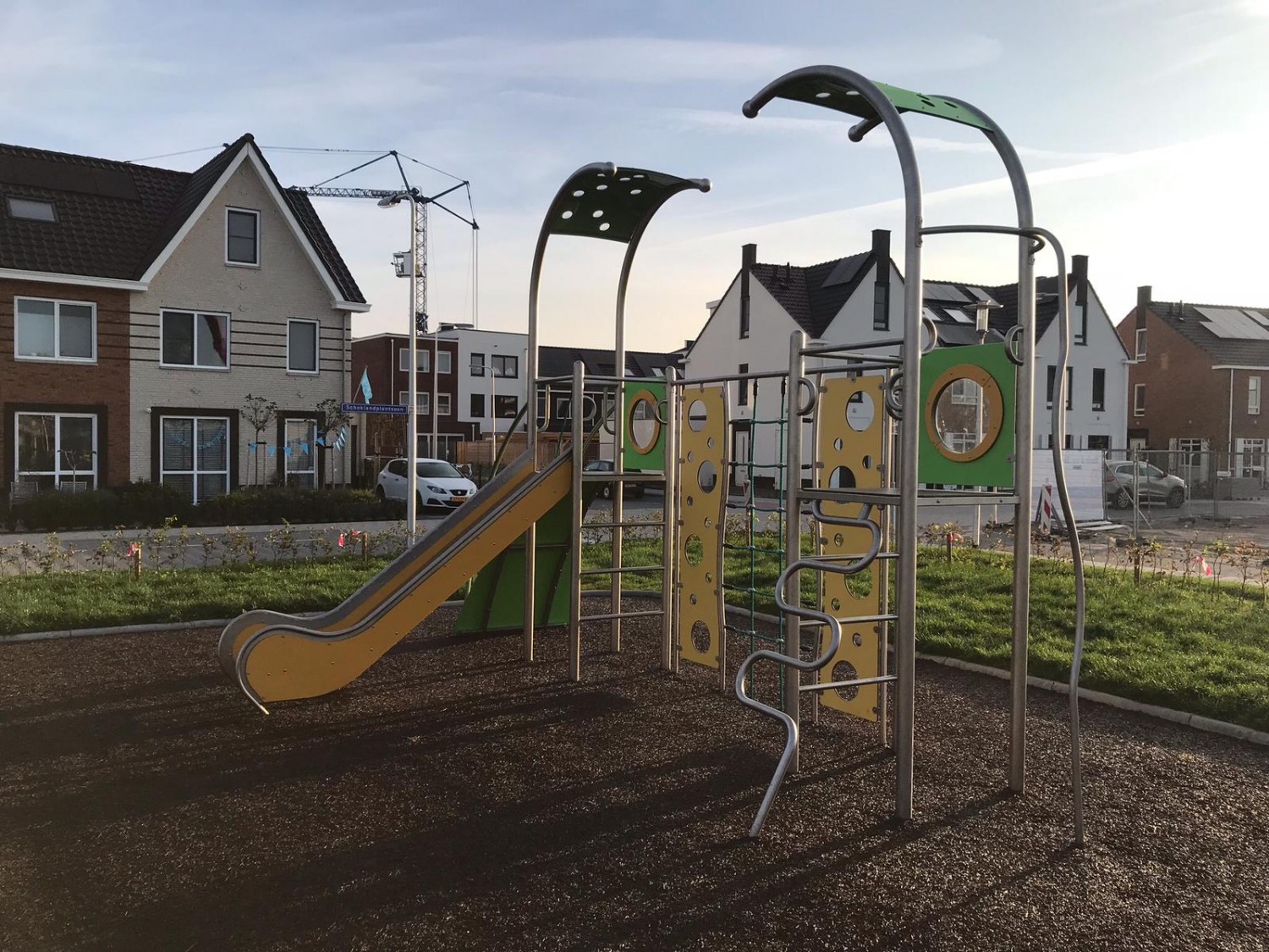 Snigelinspirerad lekställning som kombinerar rutschkana och klätterlek i färgstark design. Skapar trygg och aktiv lek året runt.