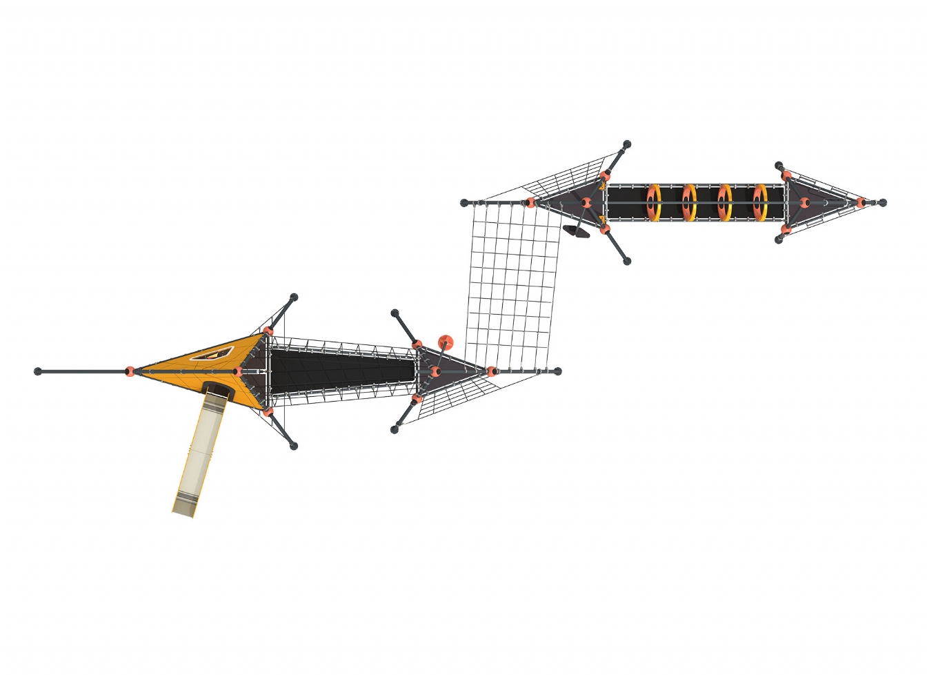 Kite-serien 1005 är ett lekplatselement som kombinerar temalek och fysisk aktivitet. Konstruktionen är framtagen för att stimulera barns rörelseglädje, fantasi och sociala lek i en trygg och inbjudande miljö.