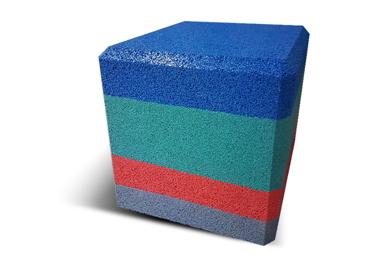 EPDM-formelement kub 400 mm för balans- och motorikytor i offentlig utemiljö.