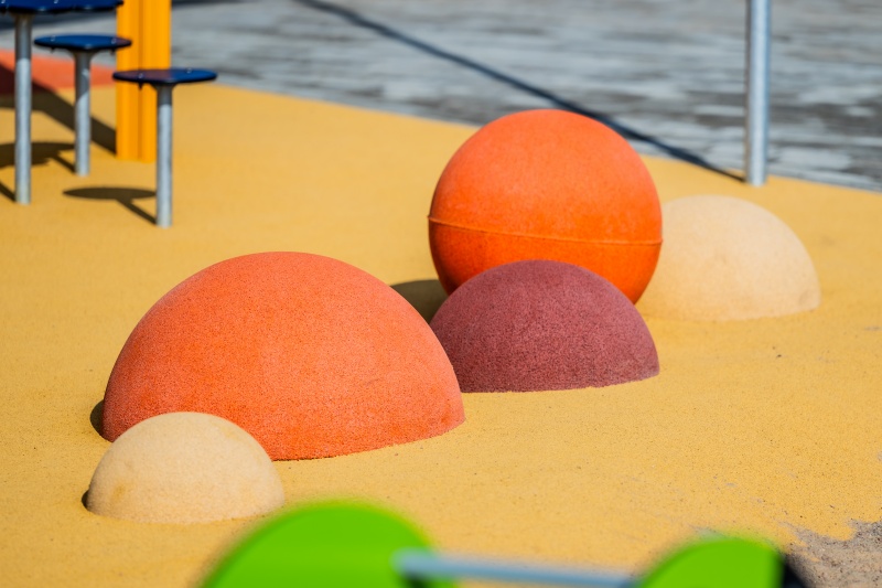 EPDM-formelement sfär D350 för balansstråk och lekytor i offentlig utemiljö.