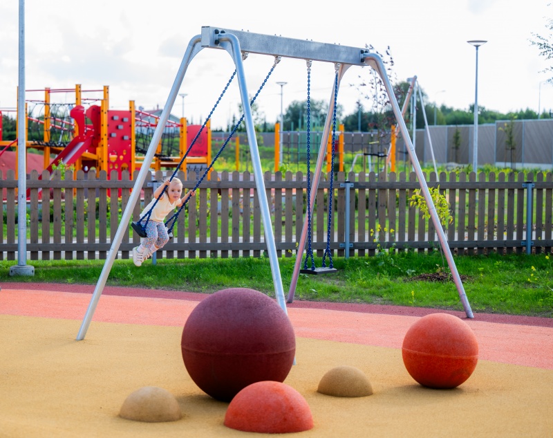 EPDM-formelement sfär D500 för balansstråk och lekytor i offentlig utemiljö.