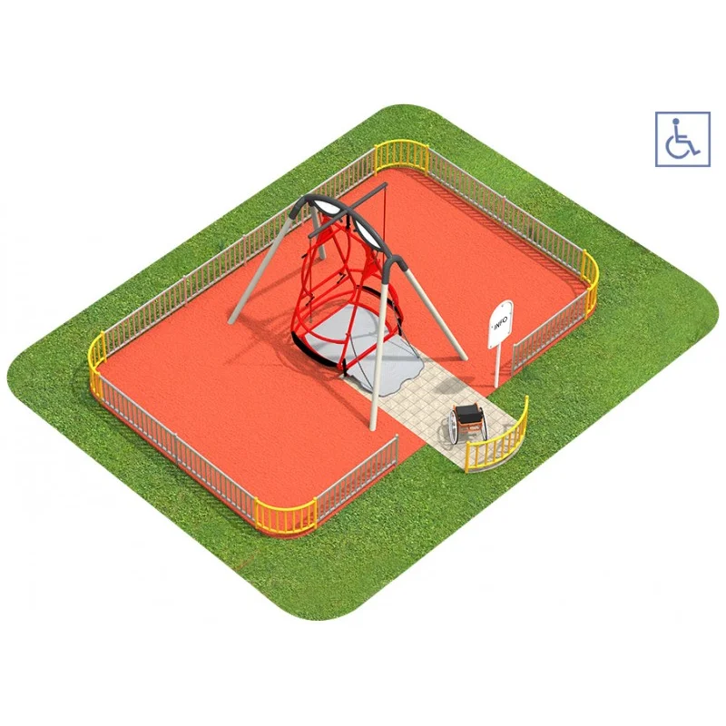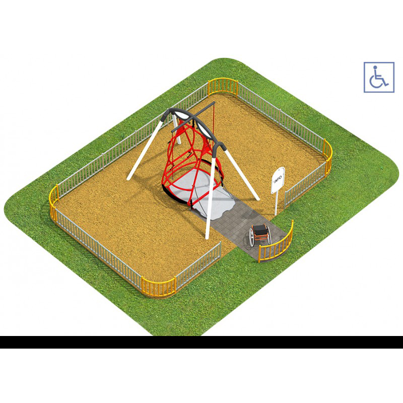 Fångst- och säkerhetsområde för rullstolsgunga.