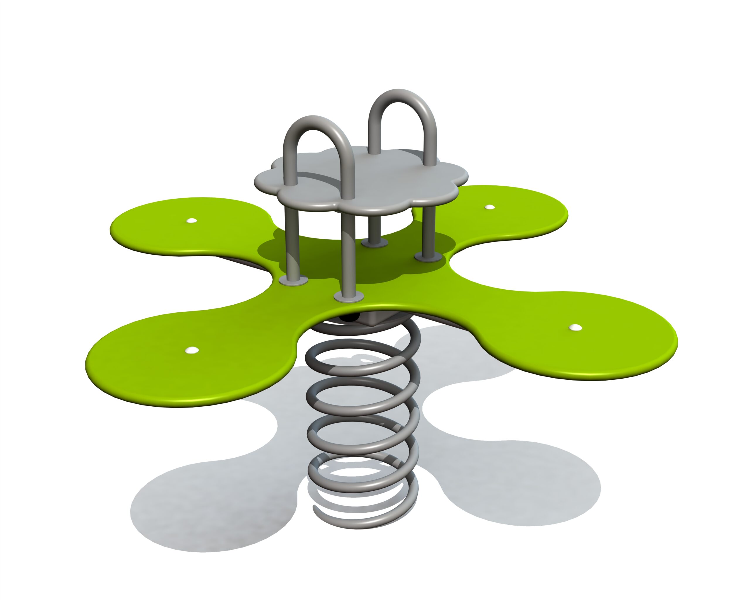 Blomma är en fjädergunga där fyra barn sitter vända mot varandra på blombladsformade säten. När barnen gungar tillsammans lär de sig samspel och rytm, samtidigt som balansen utmanas på ett lekfullt sätt.