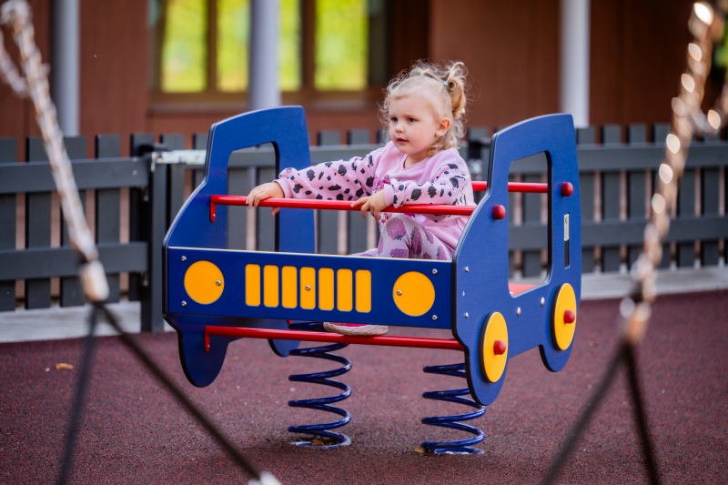 Tvåsitsig fjädergunga som uppmuntrar gemensam lek.