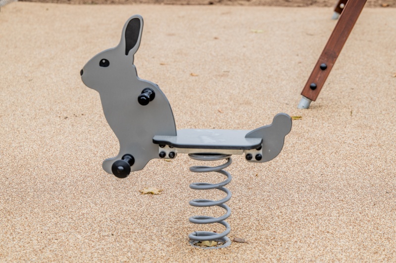 Kanin är en 1-sits fjädergunga som bjuder in till hoppig och aktiv lek. Den gungande rörelsen stärker balans och koordination, medan den tydliga djurformen lockar till igenkänning och fantasi. Handtag och benstöd gör gungan trygg även för yngre barn.