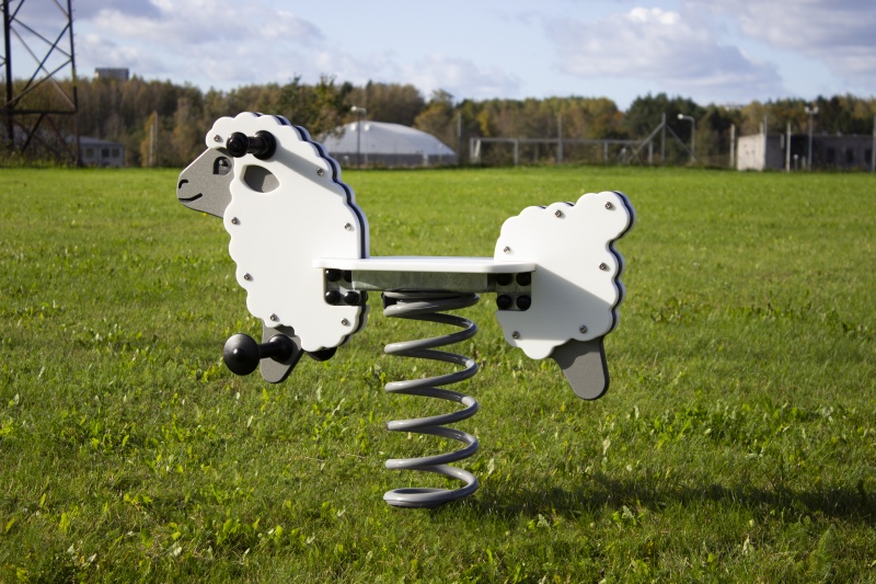 Fjädergunga i FARMLIFE-serien med djurtema för trygg rörelselek och tidig motorisk utveckling i offentlig utemiljö.