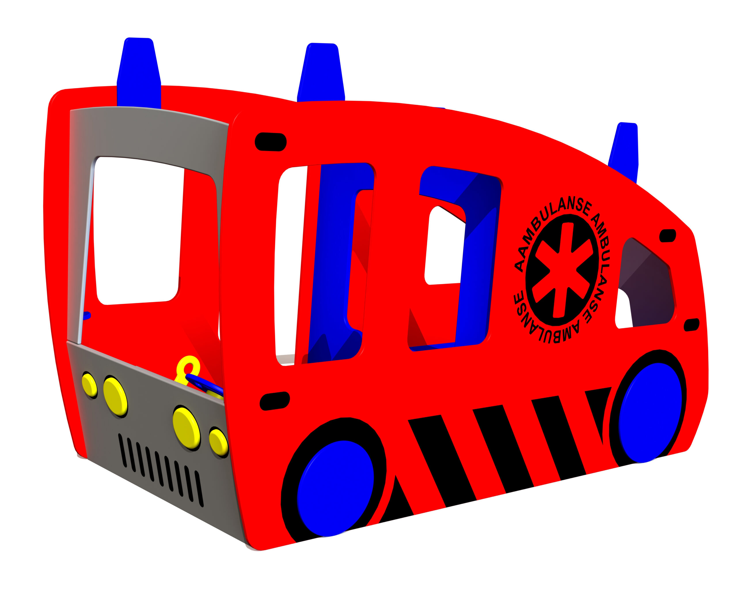 Lekbilen AMBULANS är anpassad för små barn och rymmer cirka 5–10 barn samtidigt. Barnen kan ta roller som ambulansförare, läkare eller patienter i leken.