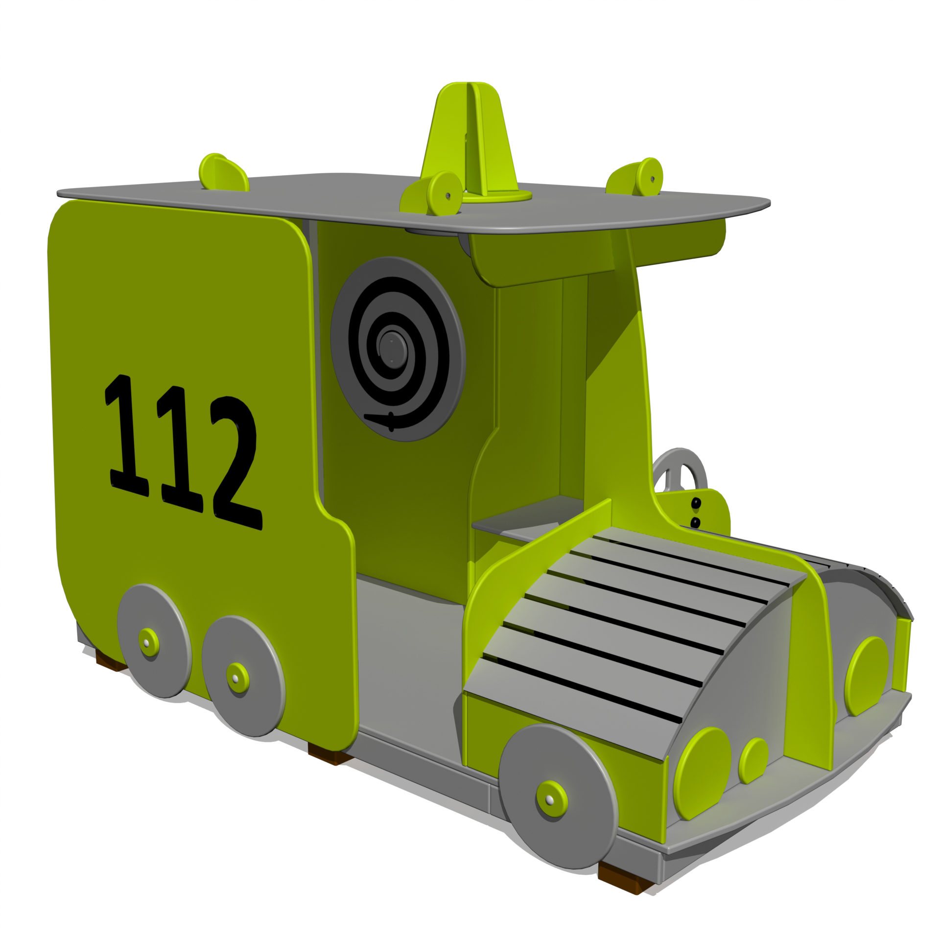 Den spännande rollleksaken NÖD är designad för små barn och rymmer 4–8 barn åt gången. Barnen kan ta roller som förare, räddare eller läkare. Den bakre bänken gör det möjligt för den som behöver hjälp att ligga ner, vilket förstärker rolleksupplevelsen.