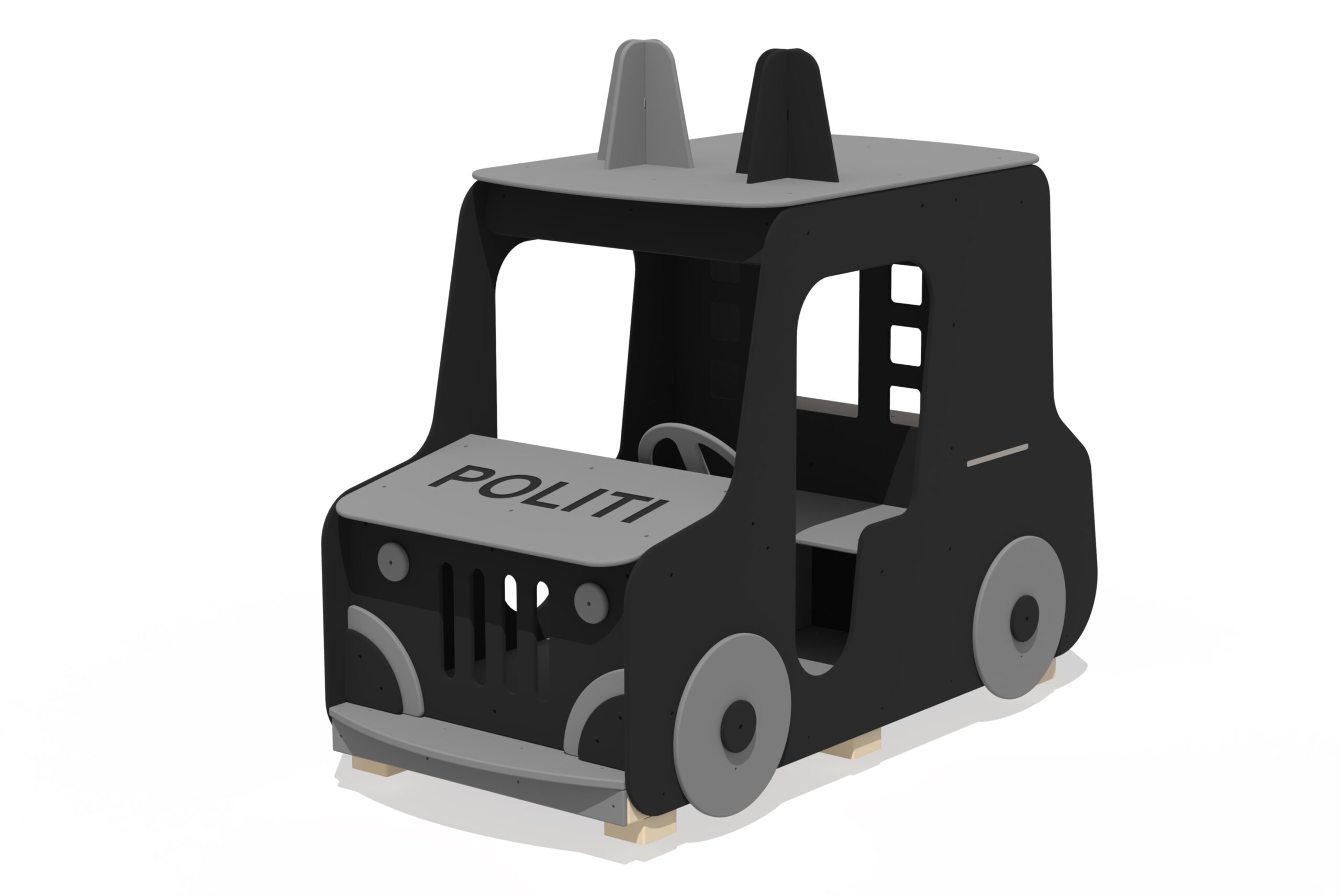 Fordon POLIS är designad för små barn och låter dem ta rollen som polischef. Barnen kan sitta i förarsätet, bromsa och öka hastigheten med pedalerna och utforska fantasivärlden tillsammans med lekkamrater.