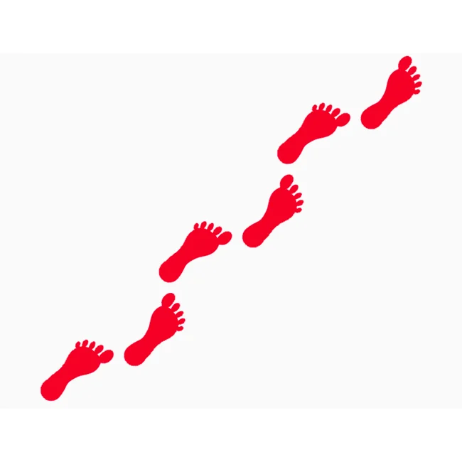 Fem par i samma färg. Välj mellan röd, orange, gul, blå eller grön. Varje fot levereras på ett enskilt ark så att placeringen kan anpassas helt fritt.