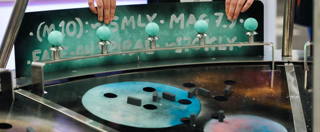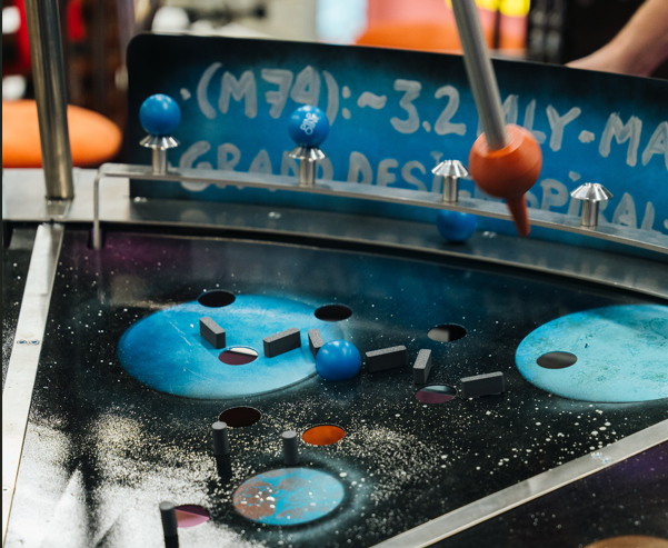 - Pendeln får sedan dras till bordytans ytterkant och släpps därefter för att träffa bollarna på motstående Galax dvs. din egen Galax med dina 5 bollar.Du har alltså din galax rakt över där du sitter.