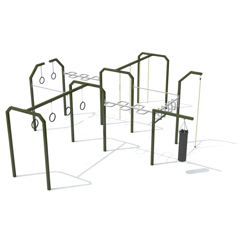 Gymnastikset för ungdomar och vuxna bestående av tre uppsättningar gymnastikringar, träningsväska, fem klätterrep, två enkelstänger samt tre stänger med handtag (en vertikal och två horisontella). Konstruktionen är tillverkad av korrosionsskyddat och pulverlackerat stål. Träningen stärker hela kroppen och förbättrar kardiovaskulär och andningsuthållighet.