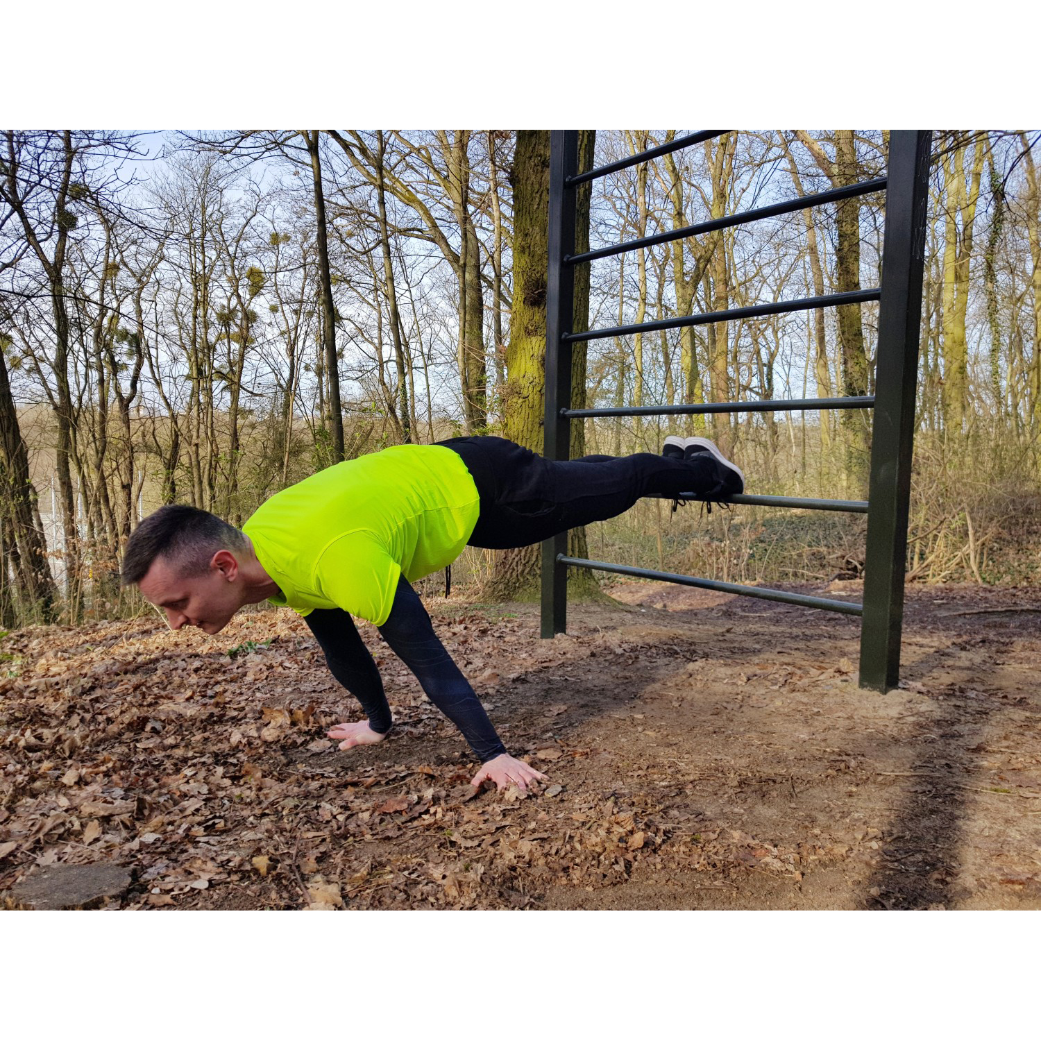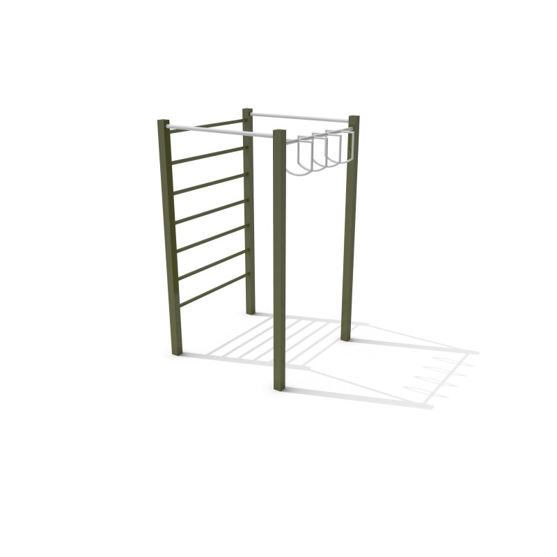 Gatuträningsset för tonåringar och vuxna bestående av två träningsstänger, en vertikal stege och en horisontell stång med handtag. Konstruktionen är tillverkad av galvaniserat och pulverlackerat stål. Träningen stärker muskler i bröst, rygg, armar, axlar och mage samt förbättrar balans och motorisk koordination.