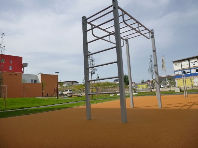 Gatuträningsset för tonåringar och vuxna bestående av en horisontell stege med handtag samt en vertikal stege. Konstruktionen är tillverkad av galvaniserat och pulverlackerat stål. Träningen stärker överkroppens muskulatur och förbättrar balans och motorisk koordination.