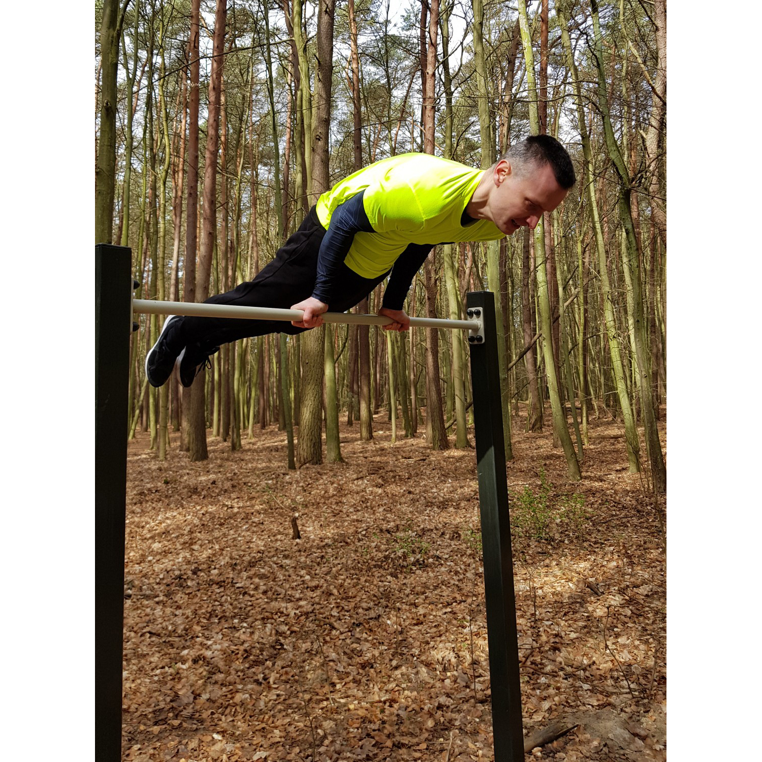 Gatuträningsset för tonåringar och vuxna bestående av fyra horisontella stänger sammanfogade på tvären samt två små fyrkantiga handtag. Konstruktionen är tillverkad av galvaniserat och pulverlackerat stål. Träningen stärker överkroppens muskler och förbättrar balans och motorisk koordination.