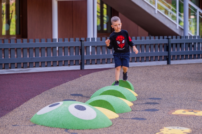 Gummidjur Caterpillar är ett balansredskap som tagits fram för lekplatser, förskolegårdar och andra offentliga utemiljöer. Modellen uppmuntrar barn att träna kroppskontroll, koordination och självförtroende genom aktiv rörelse. Konstruktionen är avsedd för regelbunden användning över tid och passar projekt där man vill kombinera lekvärde med hållbar drift. Mått enligt specifikation: cirka 4,24 x 2,31 x 0,27 m. Rekommenderad ålder: 1+. En praktisk lösning för långsiktig och trygg lekmiljö.