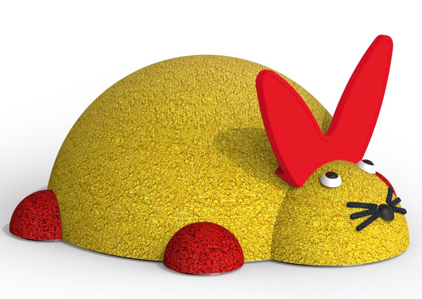 Figur tillverkad av rostfritt stål med färgad gummibeläggning.