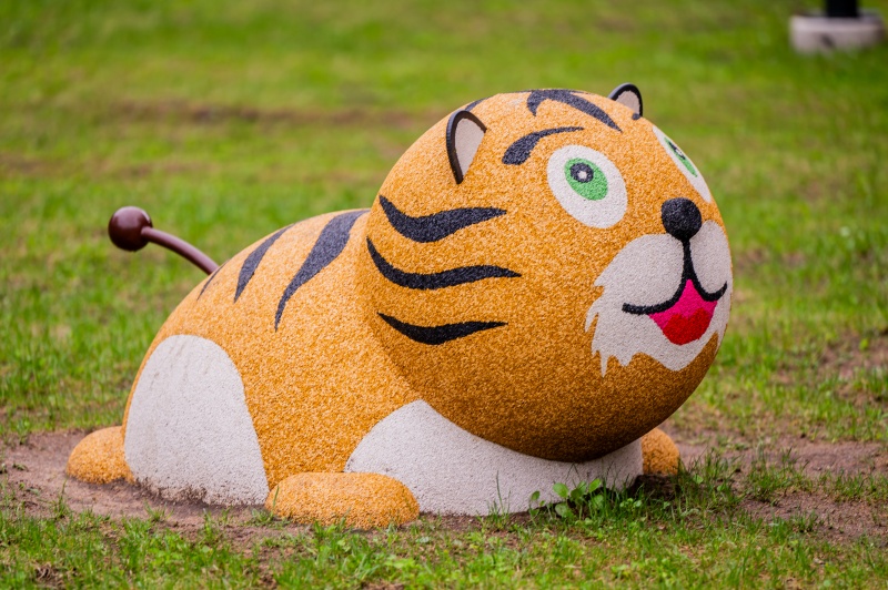 Slitstark 3D-figur tillverkad av EPDM-granulat med pulverlackerade metalldelar. Avsedd för montering på hårt underlag för hög stabilitet.
