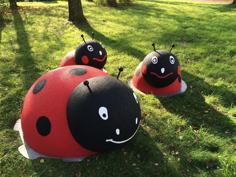 3D-figur tillverkad av färgat EPDM-granulat med pulverlackerade metalldelar. Monteras på asfalt eller betong med hjälp av ankarfästen för stabil installation.