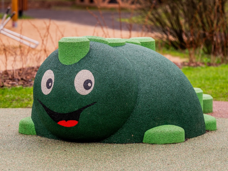 Vandalsäker 3D-figur som tål intensiv användning. Figuren fungerar både som lekelement och visuell lekplatsdetalj.
