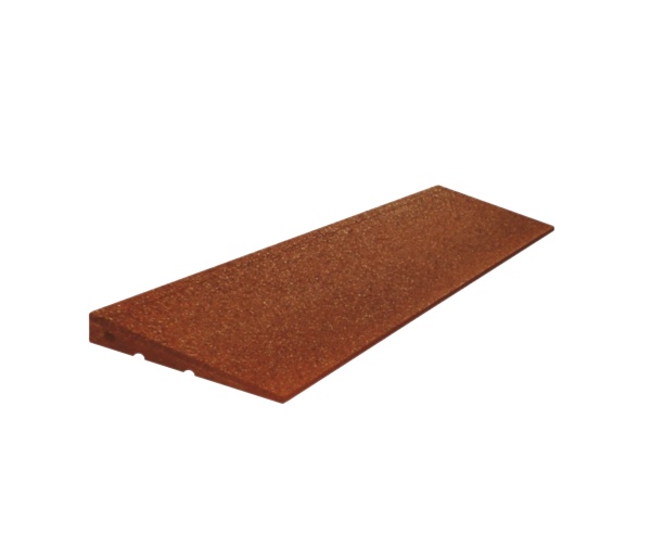 Trottoarkant av återvunnet SBR-granulat med färgat polyuretanlim och 20 mm framkant som gör ytan lättare att nå. Levereras i tre färgval.