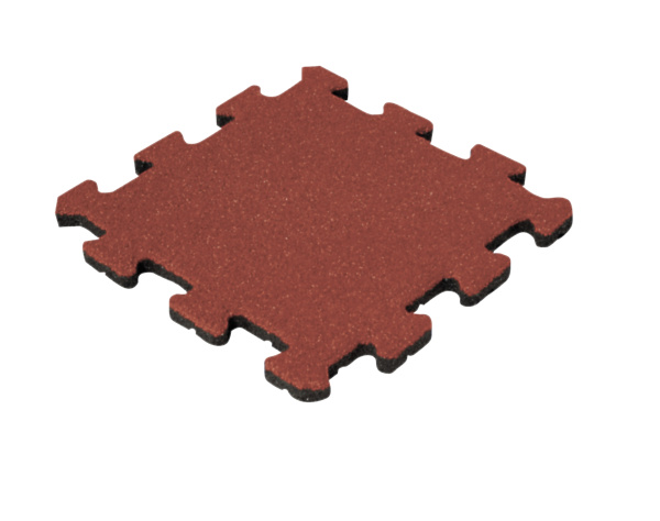 Pusselformad gummiplatta av återvunnet SBR med färgat toppskikt som ger mycket god stötdämpning. Enkel installation med pussellås och kompatibel med kant- och hörndelar för säkra och kompletta lekytor.