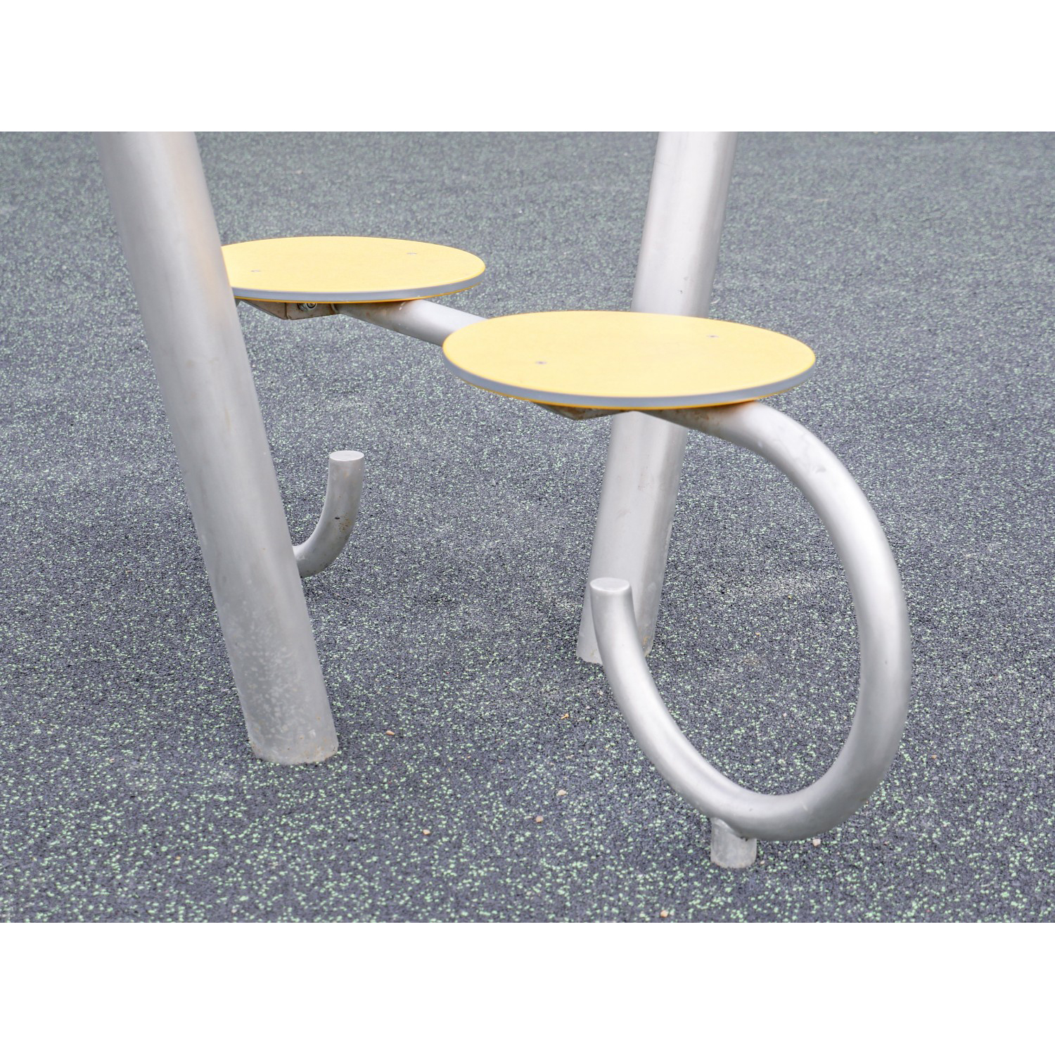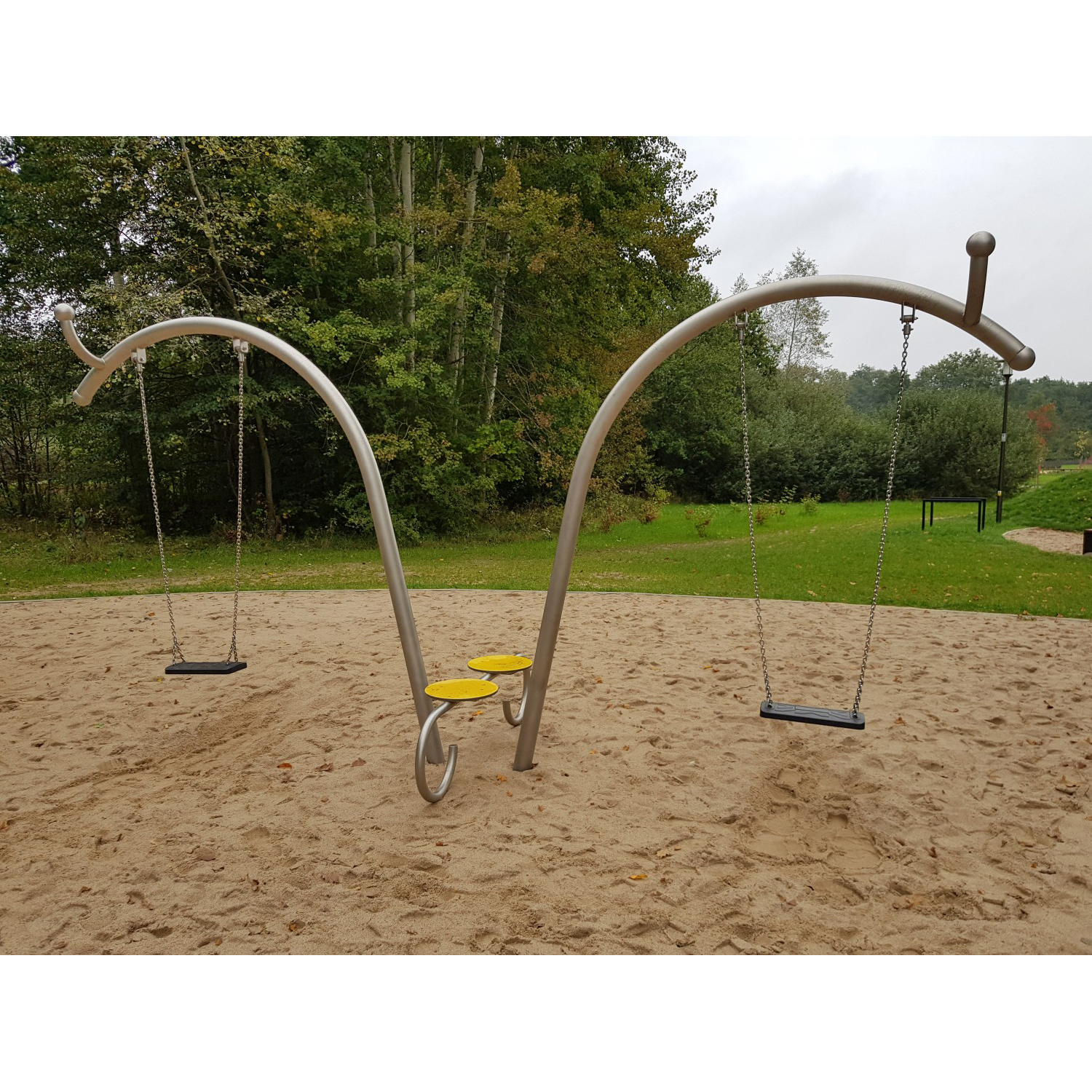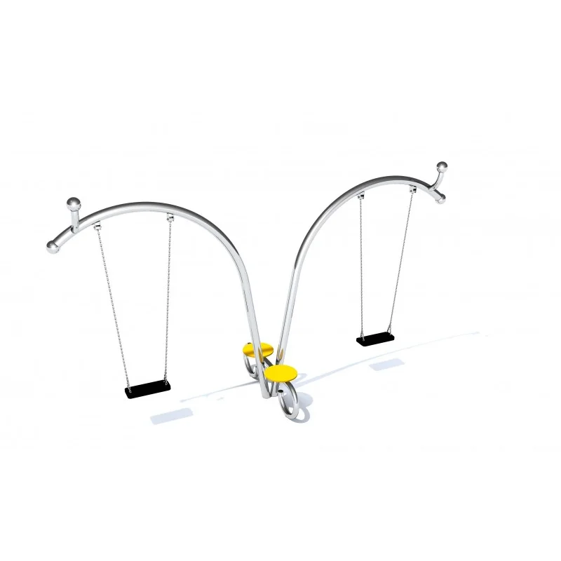 ARCO 1 är en dubbelgunga med två platta säten för två personer. Konstruktionen är tillverkad av rostfritt stål och kompletteras med två föräldrabänkar i HDPE-material. Designen har dekorativa detaljer i form av snigelinspirerade runda avslut. Finns även i galvaniserad och pulverlackerad version.