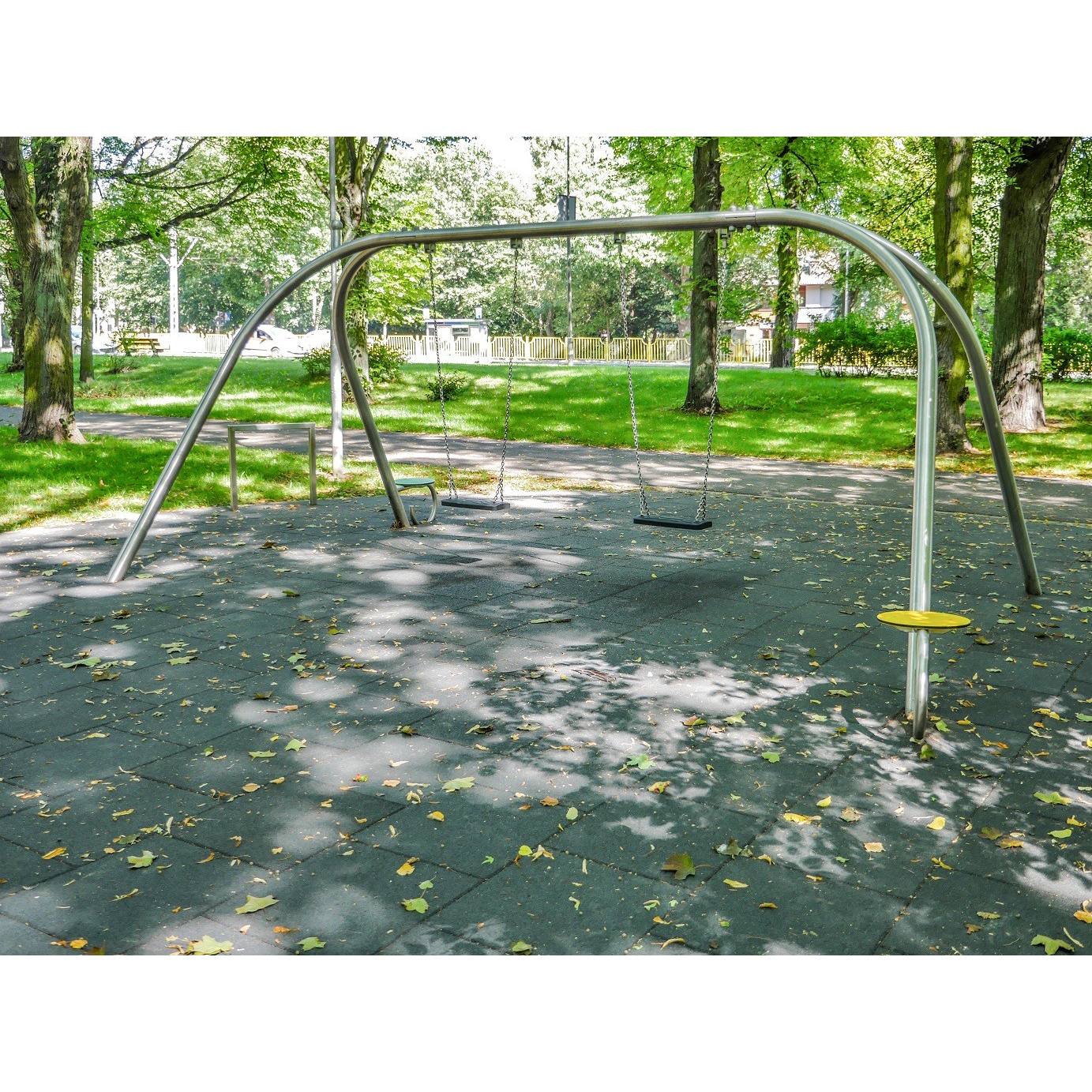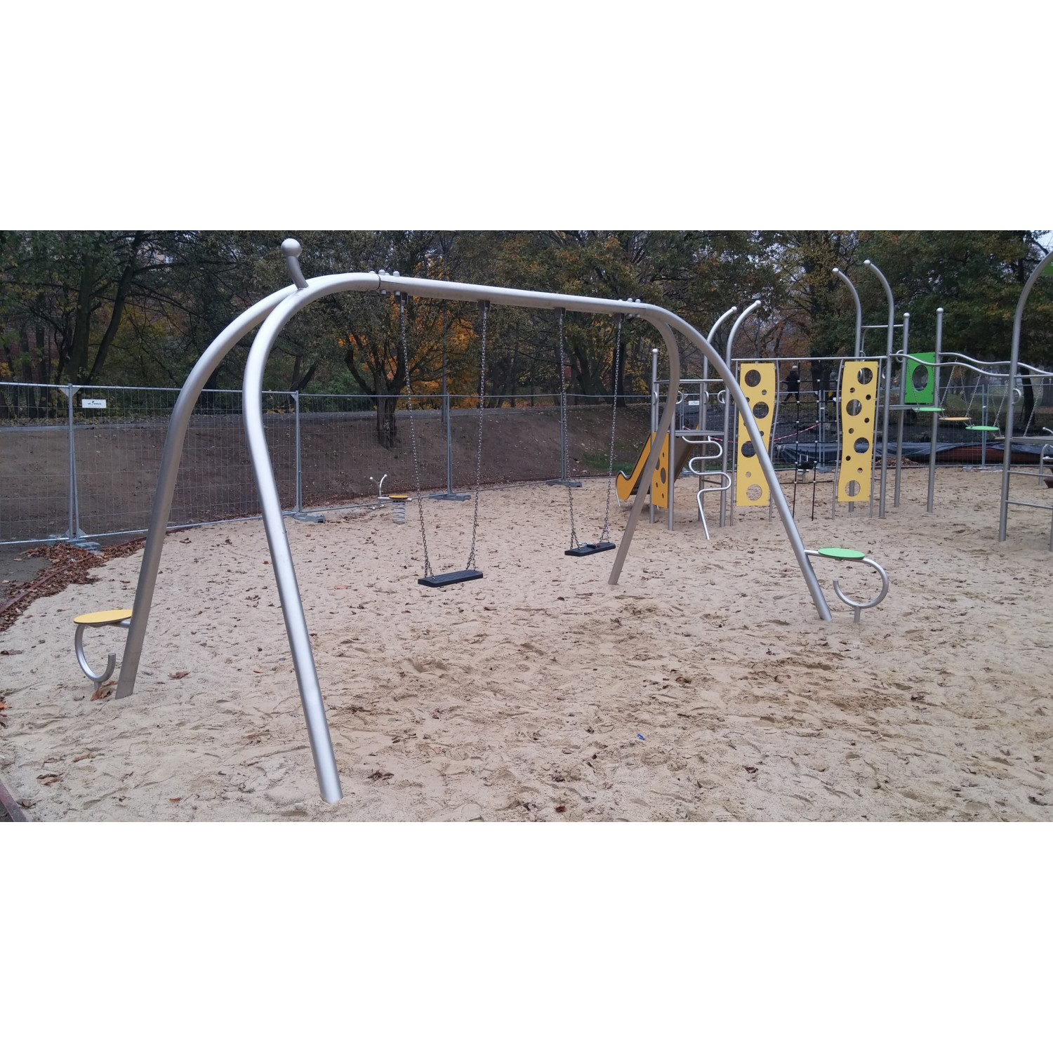 ENIRO 1 är en dubbelgunga med två platta säten för två personer. Den är utrustad med två bänkar för föräldrar och har en lekfull design med snigelinspirerade detaljer. Konstruktionen är i rostfritt stål och bänkarna i HDPE. Finns även i galvaniserad och pulverlackerad version.