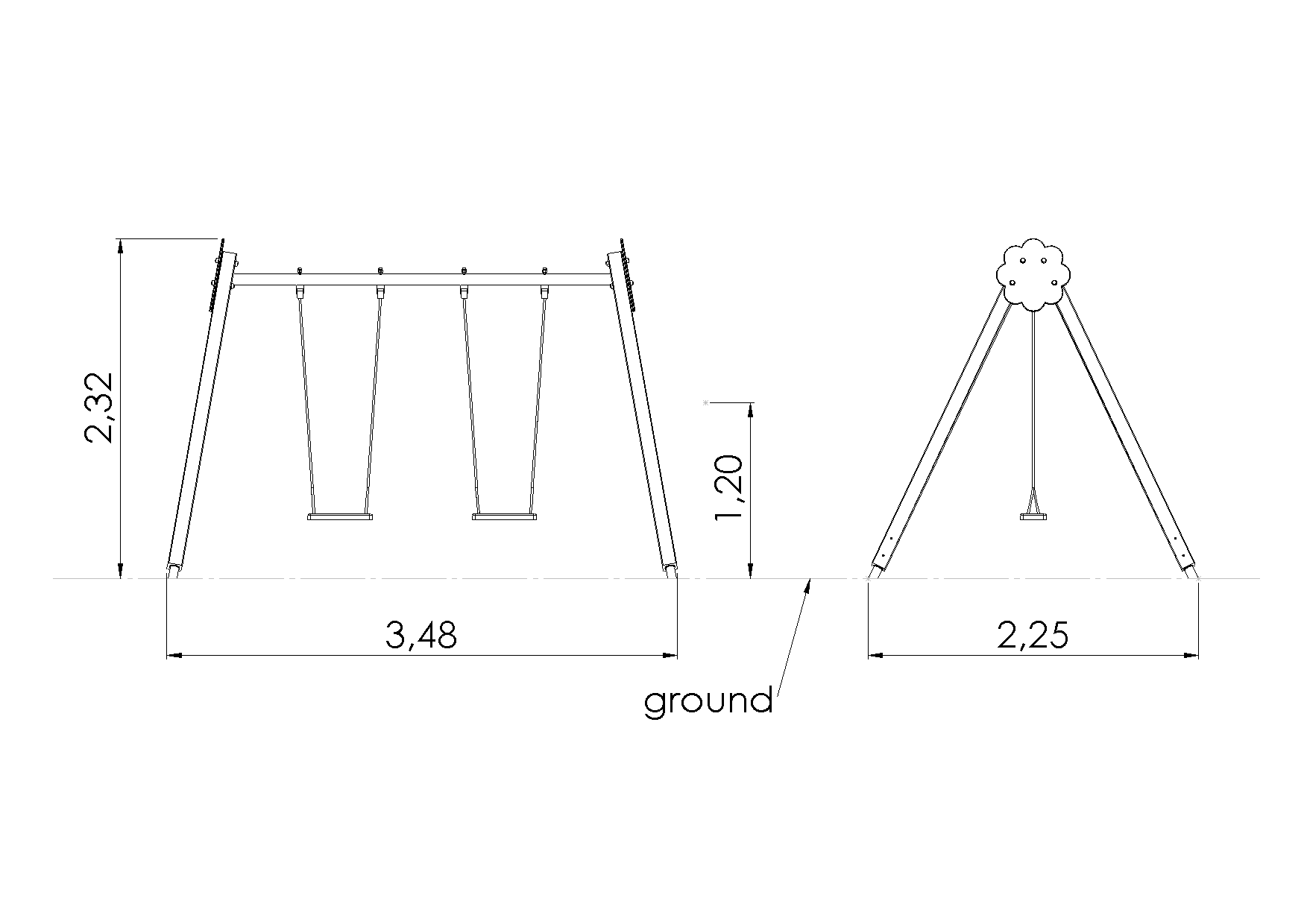 Produkten är utvecklad för lekplatser, förskolegårdar och andra offentliga utemiljöer där utrustningen behöver tåla regelbunden användning över tid. Produkten ger en välkänd och uppskattad rörelseaktivitet och passar både nya anläggningar och uppgraderingar av befintliga lekytor. Mått enligt specifikation: cirka 3,48 x 2,25 x 2,32 m. Rekommenderad ålder: 1+. En hållbar lösning för långsiktig drift och trygg användning i offentlig utemiljö.