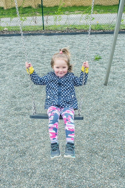 Enkel gunga i rostfritt stål med bekväm HDPE-sits för barn i alla åldrar.