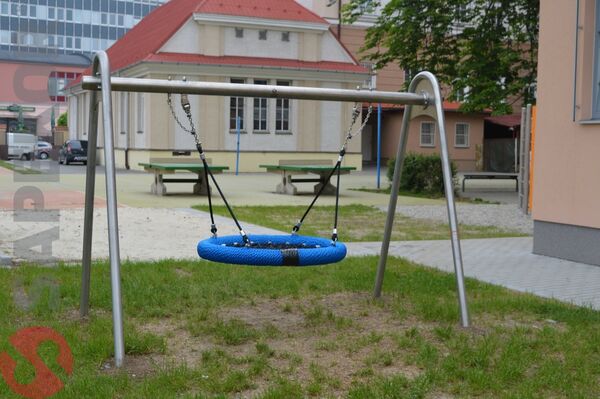 Stålgunga med robiniaben och fågelbo