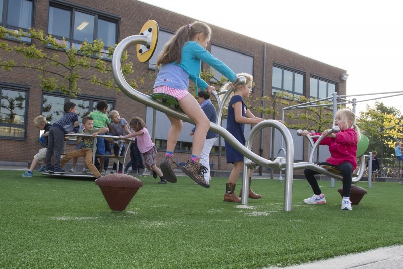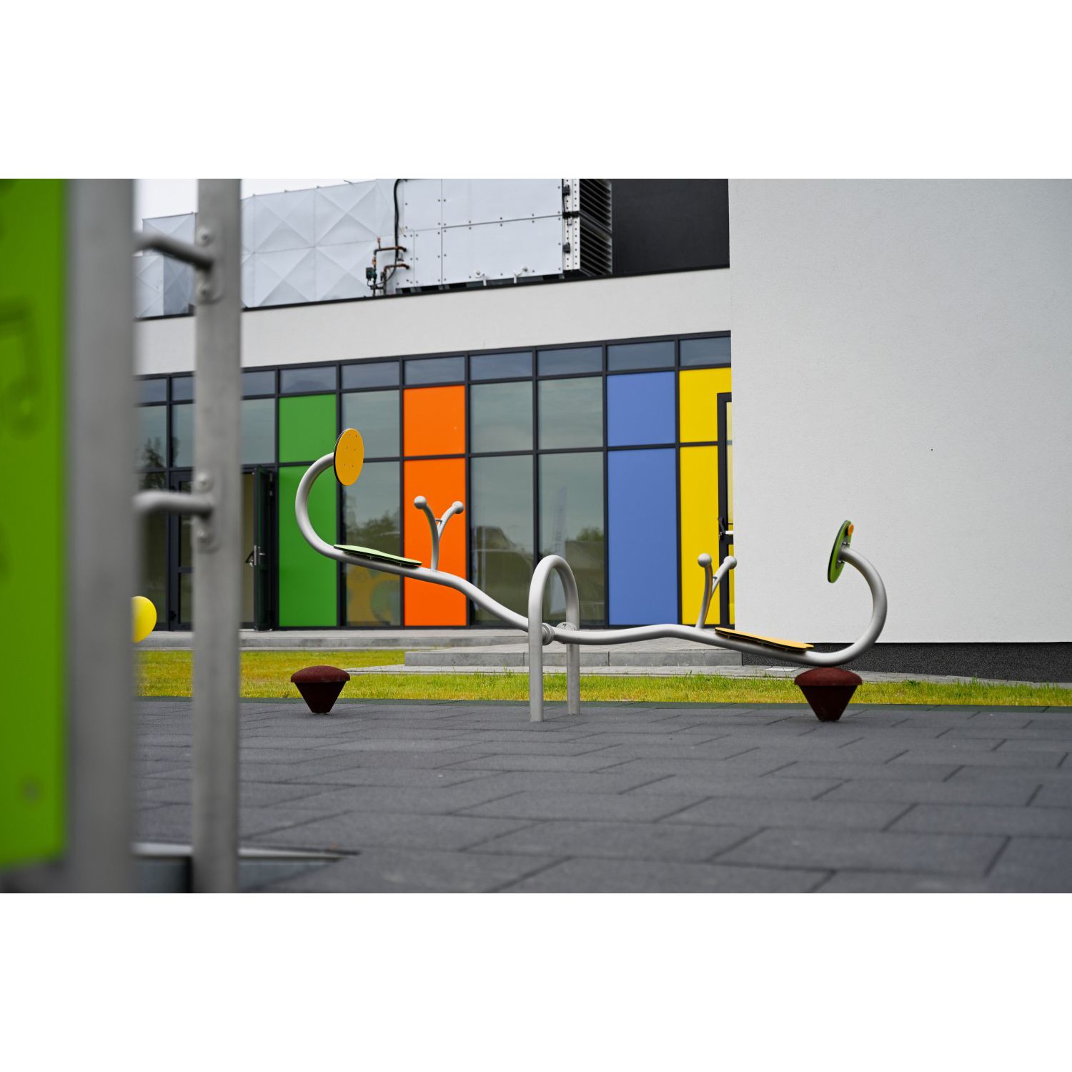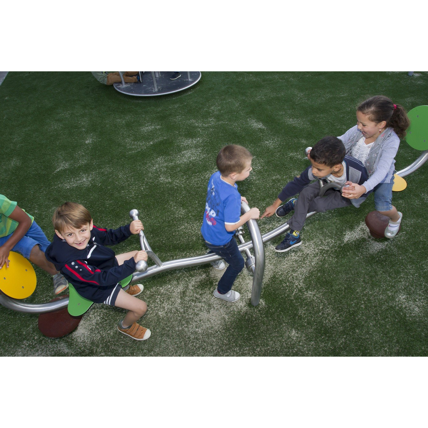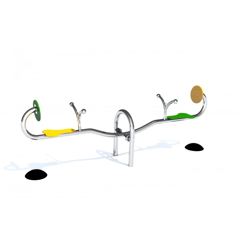 BALANCILO 2 har två säten med ryggstöd och handtag som ger extra trygghet under leken. Den snigelinspirerade designen kombineras med en slitstark konstruktion i rostfritt stål. Gungrörelsen tränar balans och kroppsmedvetenhet i ett stabilt format.