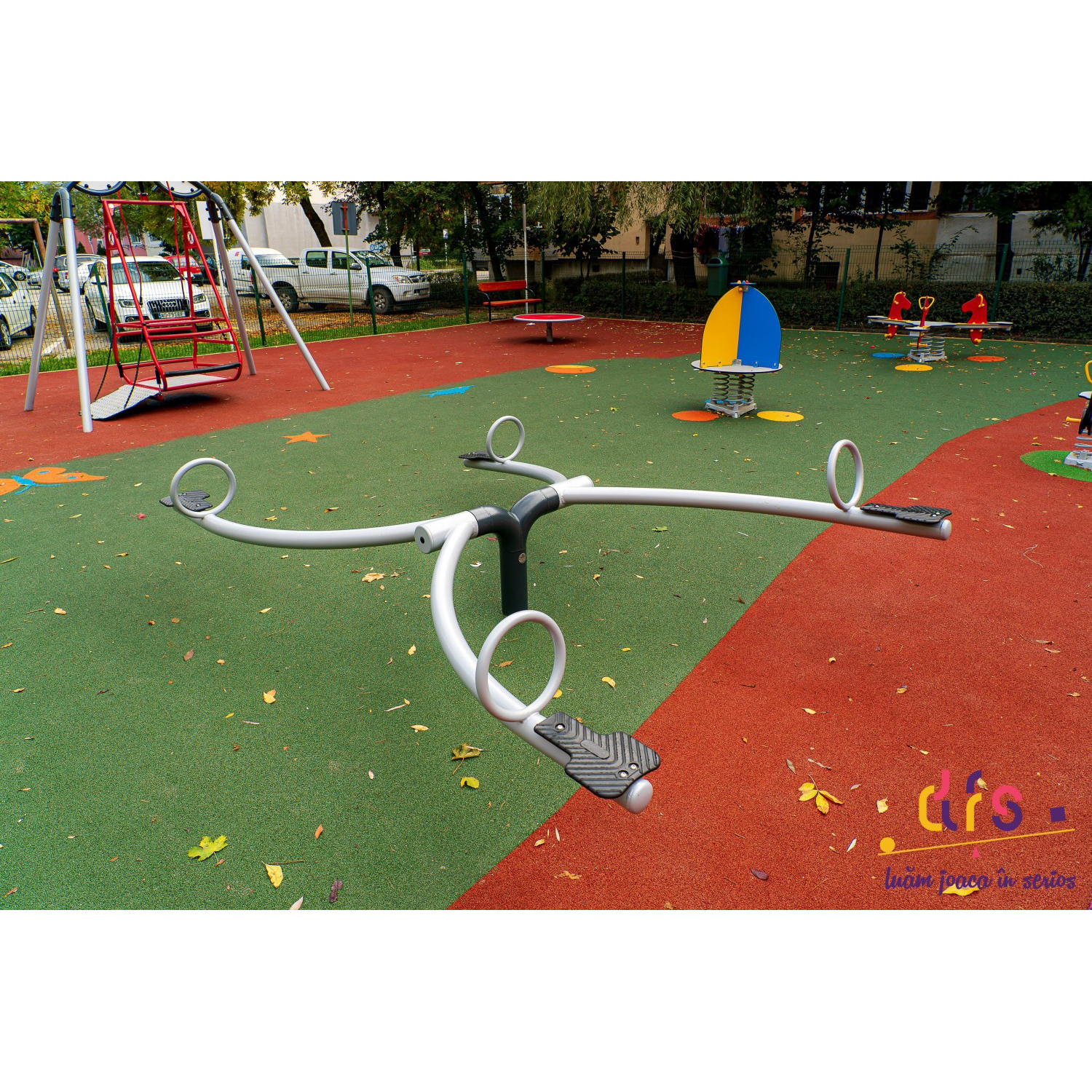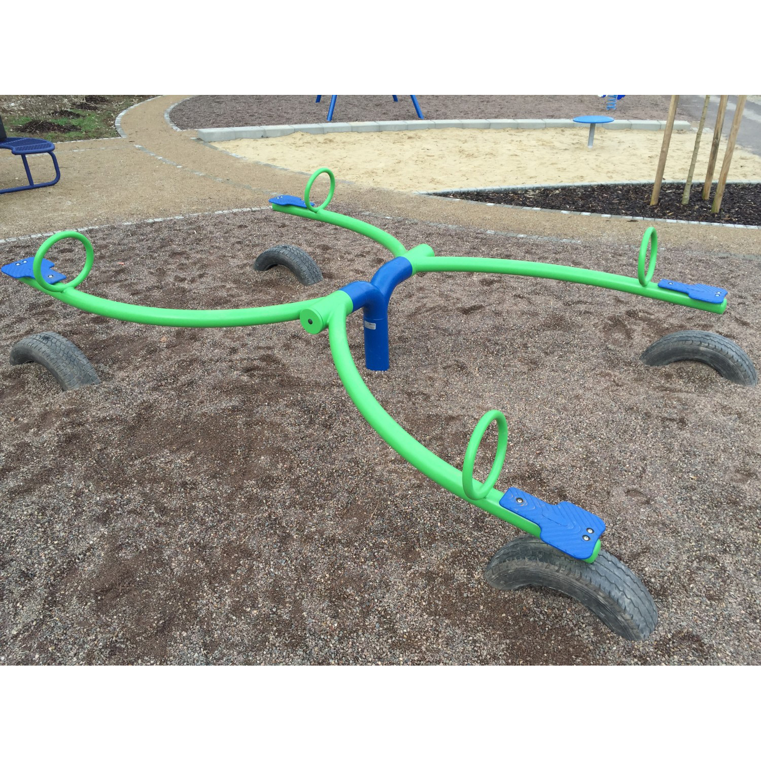 Gungbräda KRABBA består av två integrerade gungbrädor för fyra användare. Den är utrustad med ”Slow System” som ger kontrollerad gungning. Leken uppmuntrar samarbete och tränar balans och koordination.