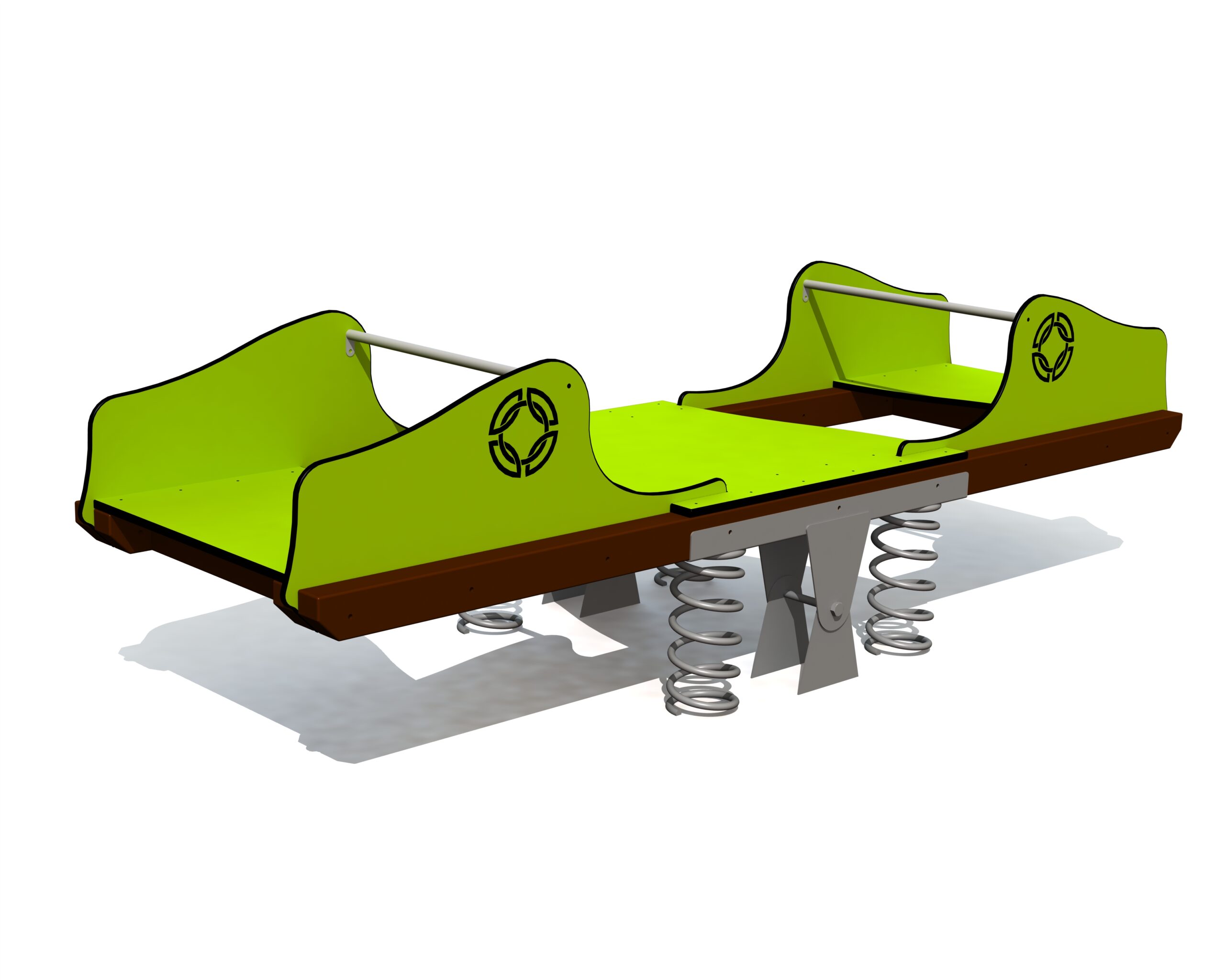 FUN gungbräda är utformad för grupplek och rymmer flera barn samtidigt. Tack vare fjädrarna fungerar den även med färre användare. Barnen sitter mittemot varandra och håller i särskilda rörhandtag, vilket skapar en lekform som tränar samspel, balans och koordination i grupp.