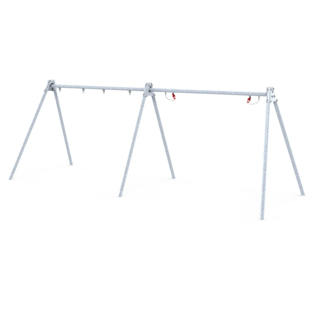 Modulärt metallgungstativ anpassat för två gungor och en fågelbogunga.