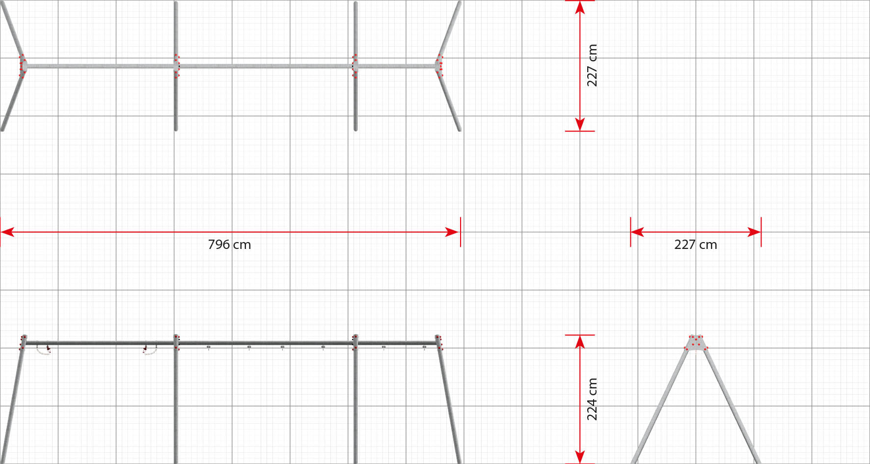 Gungstativ i metall med modulär uppbyggnad som kombinerar klassisk gunglek med möjlighet till avkoppling i fågelbogunga. Levereras utan sitsar för flexibel anpassning.